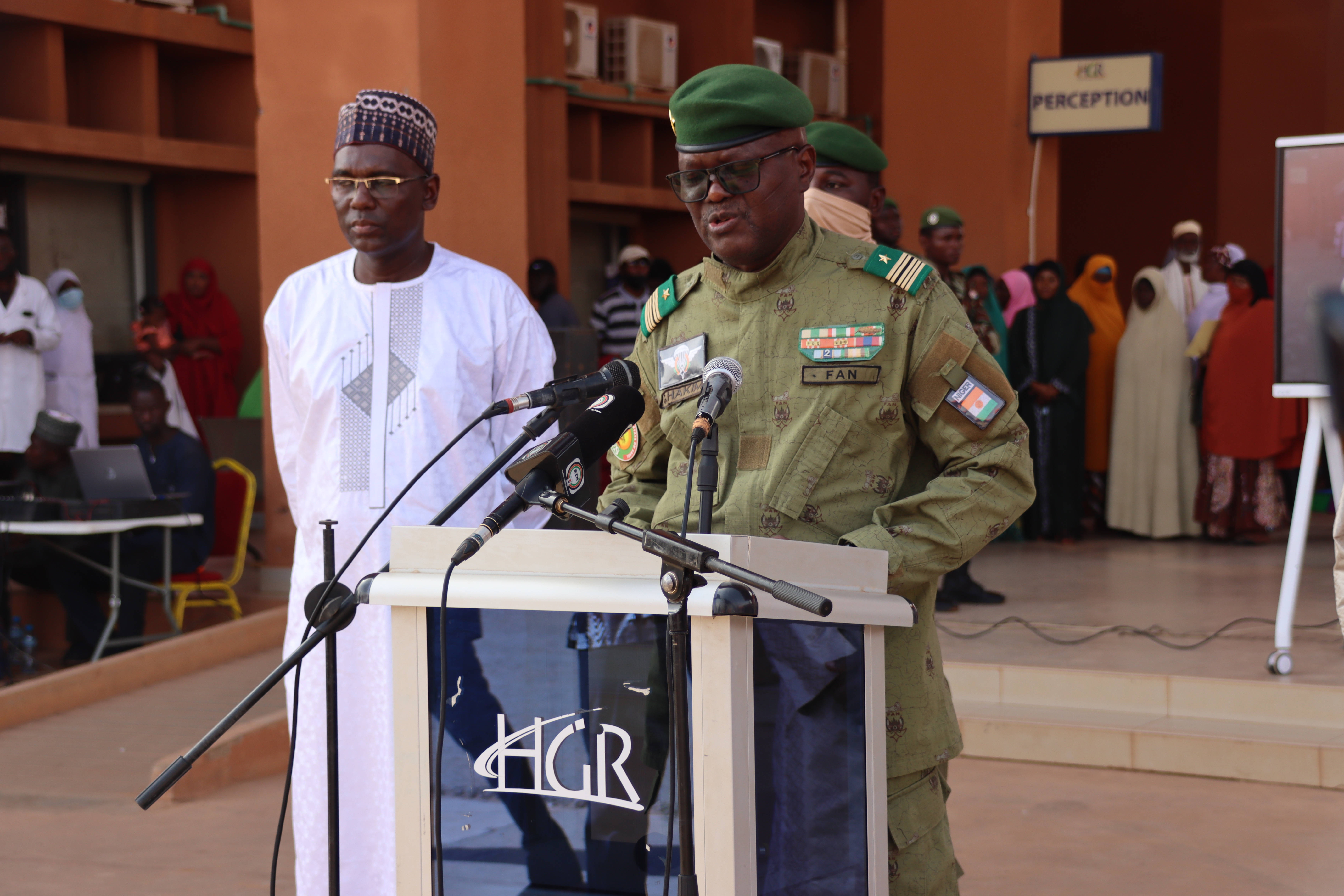 3月25日,在尼日尔首都尼亚美举办的中国援尼日尔医疗队50周年纪念活动上,尼日尔公共卫生与健康部长加尔巴·哈基米上校致辞。新华社发(中国第25批援尼日尔医疗队供图)达乌在致辞中对中方长期以来提供的医疗援助表示感谢,高度评价中国医疗队50年来为提升尼日尔医疗服务能力所作贡献。